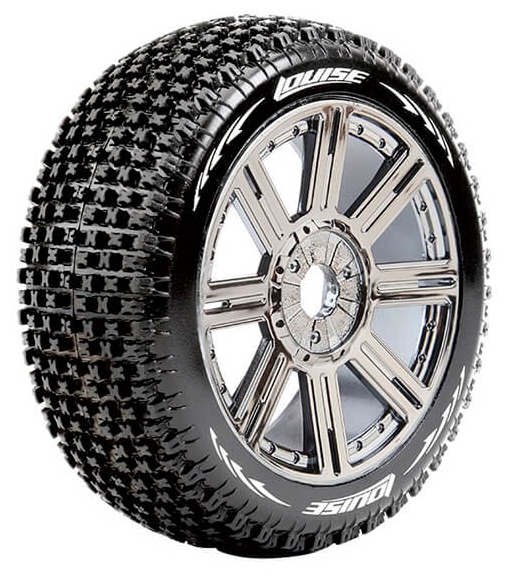 Series: B-PirateCompound: Super SoftColour: Black ChromeHex Fitment: 17mmFits: 1/8 Off-Road BuggyTyre Width: 42mmTyre Diameter: 114mmWheel Offset: TBCIncludes Insert: YesGlued: Yes