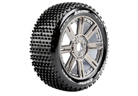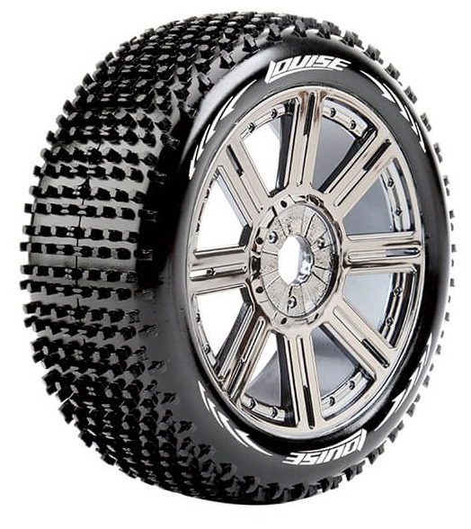 Series: B-HornetCompound: SoftColour: Black ChromeHex Fitment: 17mmFits: 1/8 Off-Road BuggyTyre Width: 44.6mmTyre Diameter: 114mmWheel Offset: TBCIncludes Insert: YesGlued: Yes