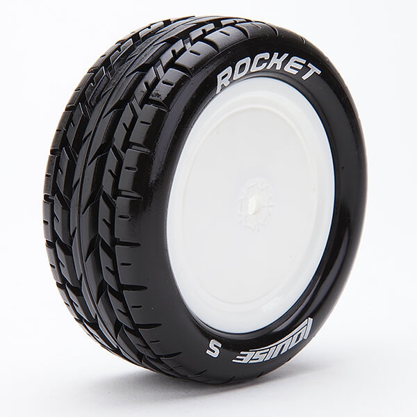 Series: E-RocketCompound: SoftColour: WhiteHex Fitment: 12mmFits: 1/10 Off-Road Buggy, Kyosho FRTyre Width: 35.2mmTyre Diameter: 85.7mmWheel Offset: TBCIncludes Insert: YesGlued: Yes