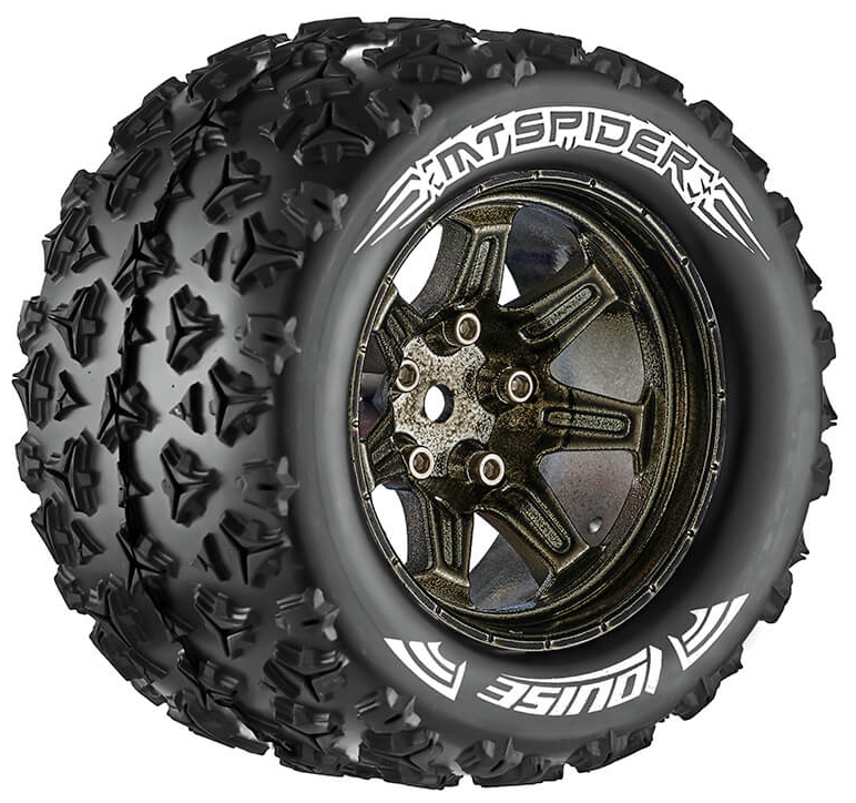 Series: MT-SpiderCompound: SoftColour: Black ChromeHex Fitment: 14mmFits: 1/10 Monster Truck, Granite 4x4Tyre Width: 69.4mmTyre Diameter: 117.5mmWheel Offset: TBCIncludes Insert: YesGlued: Yes
