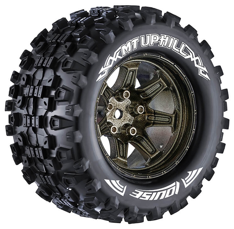 Series: MT-UphillCompound: SoftColour: Black ChromeHex Fitment: 14mmFits: 1/10 Monster Truck, Granite 4x4Tyre Width: 69.4mmTyre Diameter: 119.5mmWheel Offset: TBCIncludes Insert: YesGlued: Yes