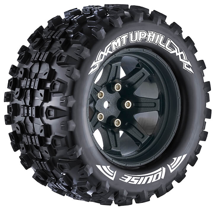 Series: MT-UphillCompound: SoftColour: BlackHex Fitment: 14mmFits: 1/10 Monster Truck, Granite 4x4Tyre Width: 69.4mmTyre Diameter: 119.5mmWheel Offset: TBCIncludes Insert: YesGlued: Yes