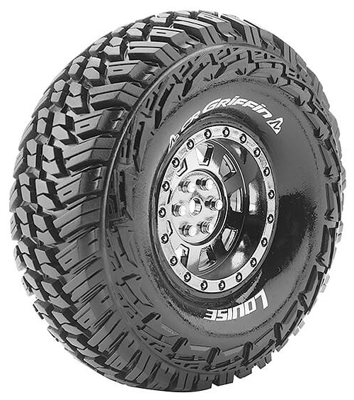 Series: CR-GriffinCompound: Super SoftColour: Black ChromeHex Fitment: 12mmFits: 1.9" CrawlerTyre Width: 45.6mmTyre Diameter: 118.6mmWheel Offset: TBCIncludes Insert: YesGlued: Yes
