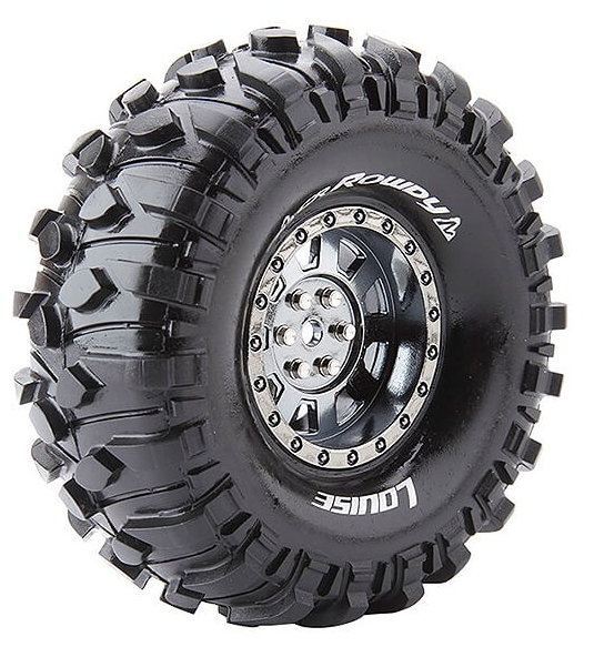 Series: CR-RowdyCompound: Super SoftColour: Black ChromeHex Fitment: 12mmFits: 1.9" CrawlerTyre Width: 49.1mmTyre Diameter: 121.3mmWheel Offset: TBCIncludes Insert: YesGlued: Yes