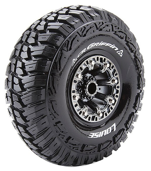 Series: CR-GriffinCompound: Super SoftColour: Black ChromeHex Fitment: 12mmFits: 2.2" CrawlerTyre Width: 56.6mmTyre Diameter: 148.2mmWheel Offset: TBCIncludes Insert: YesGlued: Yes