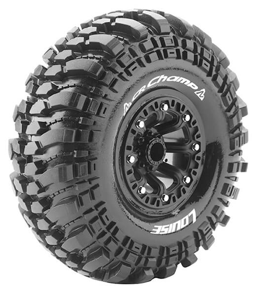 Series: CR-ChampCompound: Super SoftColour: Black ChromeHex Fitment: 12mmFits: 2.2" CrawlerTyre Width: 57.3mmTyre Diameter: 150.6mmWheel Offset: TBCIncludes Insert: YesGlued: Yes