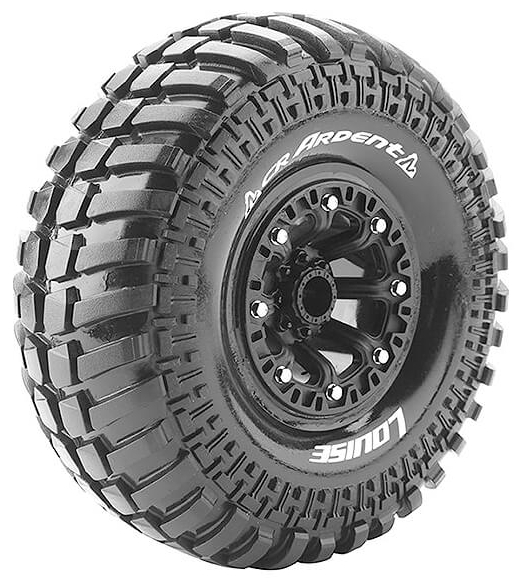 Series: CR-ArdentCompound: Super SoftColour: Black ChromeHex Fitment: 12mmFits: 2.2" CrawlerTyre Width: 55.7mmTyre Diameter: 146.5mmWheel Offset: TBCIncludes Insert: YesGlued: Yes