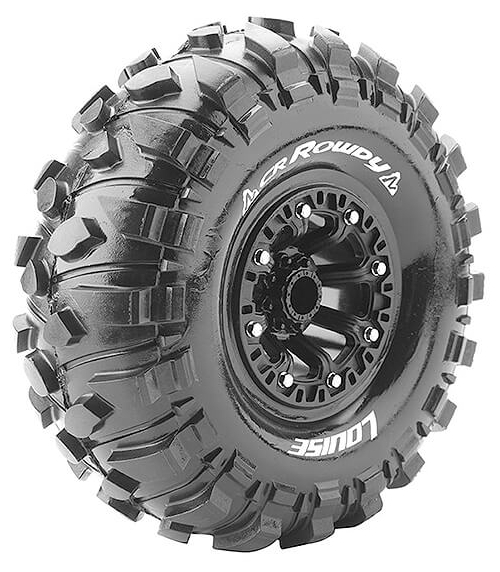 Series: CR-RowdyCompound: Super SoftColour: Black ChromeHex Fitment: 12mmFits: 2.2" CrawlerTyre Width: 58.9mmTyre Diameter: 150.6mmWheel Offset: TBCIncludes Insert: YesGlued: Yes