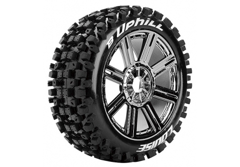 Series: B-UphillCompound: SoftColour: Black ChromeHex Fitment: 17mmFits: 1/8 Off-Road BuggyTyre Width: 44.6mmTyre Diameter: 117mmWheel Offset: TBCIncludes Insert: YesGlued: Yes