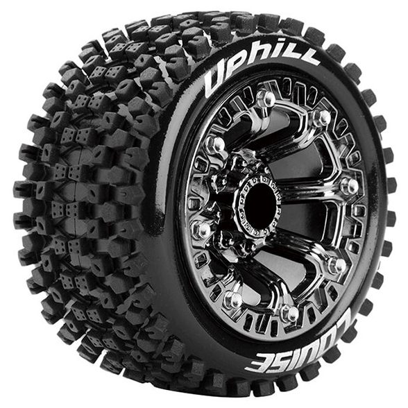 Series: ST-UphillCompound: SoftColour: Black ChromeHex Fitment: 12mmFits: 1/16 Stadium Truck, E-Revo FR/R, Summit FR/R, Savage XS Flux FR/RTyre Width: 43.5mmTyre Diameter: 90.0mmWheel Offset: TBCIncludes Insert: YesGlued: Yes