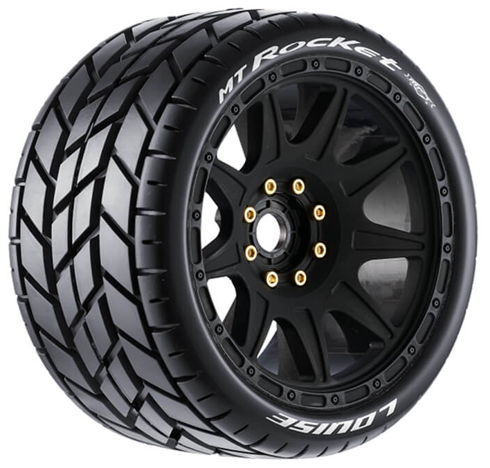Series: MT-Rocket speedCompound: SoftColour: BlackHex Fitment: 17mmFits: 1/8 Monster TruckTyre Width: 80mmTyre Diameter: 145mmWheel Offset: 0 and 1/2"Includes insert: YesGlued: Yes