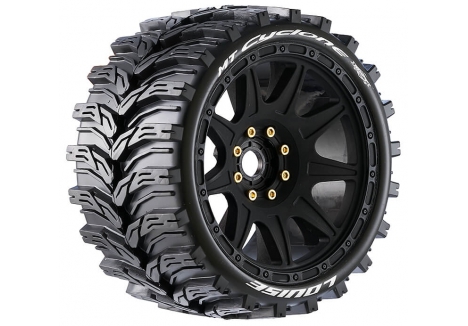 Series: MT-Cyclone speedCompound: SoftColour: BlackHex Fitment: 17mmFits: 1/8 Monster TruckTyre Width: 80.5mmTyre Diameter: 148mmWheel Offset: 0 and 1/2"Includes insert: YesGlued: Yes