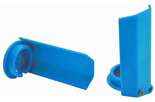 RPM Shock Shaft Guards are a simple design, replacing stock shock spring cups with ones that have mounting holes for a thin but tough shield that rises up to the base of the shock body. The guard completely blocks debris from striking the shock shaft. The back and sides are open, which prevents debris from building inside the guard as well.