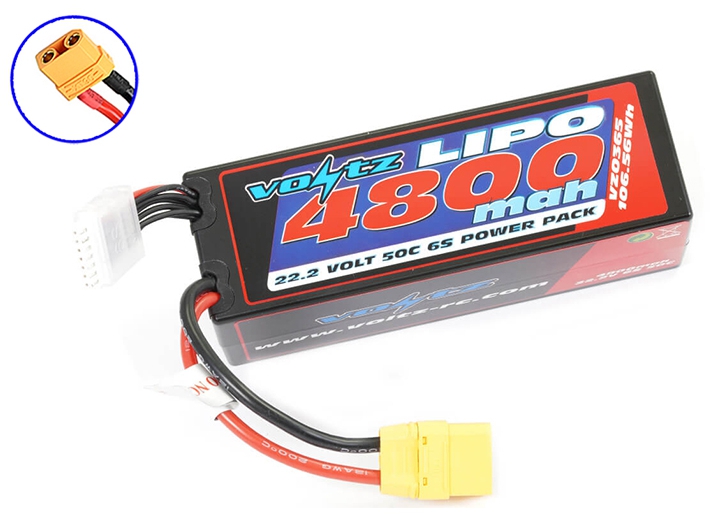 Experience the rugged durability of Voltz RC LiPo power with this 4800mAh 22.2V 50C hard case lithium polymer battery suitable for radio control vehicles. The hard shell provides extra protection for the battery, allowing the RC car to be driven to its extremes whilst maintaining great power.