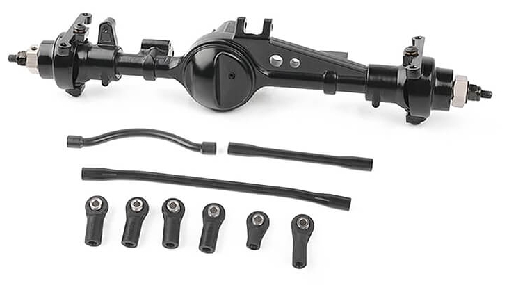 With improved steering and durability, the TEQ Ultimate Scale Axles are a modern version of the Yota II axles designed as an upgrade for Axial SCX10 II and Element Enduro line of RC trucks. These scale axles are cast from a high grade aluminum alloy and come with integrated suspension link mounts that construct a single, hardened unit. Solid and maneuverable, this set features universal style XVD shafts that deliver a tighter turning radius and high strength driveline. The ring and pinion gears are a CNC machined, hypoid tooth design and are linked to a 6 bolt hardened steel locker. The C-hubs feature interlocking grooves on the front axle which enables caster customization and the front pumpkin is offset providing more ground clearance. All of this is packed into a high strength cast aluminum case with a long lasting powder-coated finish.
