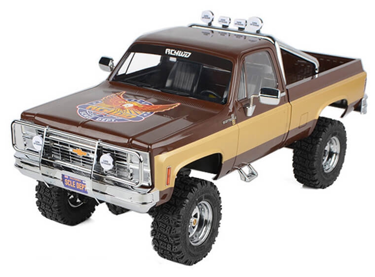 The Chevrolet K10 Scottsdale features exquisite scale details, including door handles, updated mirrors, new rear step bumper and the new front grille. It also has a complete molded plastic engine bay that comes painted with decals installed for an extremely scale appearance.