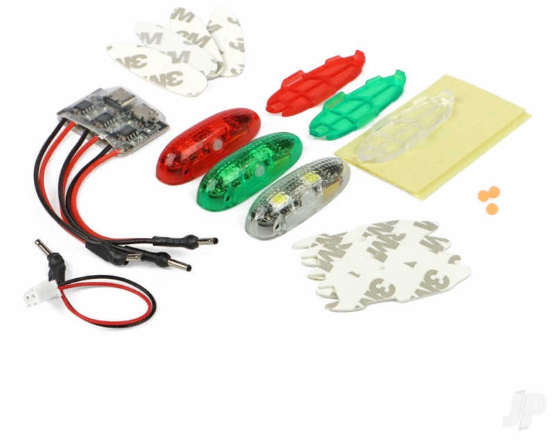 Offering three pre-programmed light sequences – double flash, single rapid flash and single heartbeat flash – actioned by the press of a button, its dead easy to adapt the sequence of each light. Why not give your model some bling, see it better in low light and take your flying to the next level of authenticity? It's never been easier.