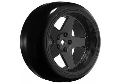 LOUISE RC 1/10 DRIFT 2,4,6,8MM OFFSET 5-SPOKE WHEELS GLOSS BLACK WITH TYRES LNHA565T