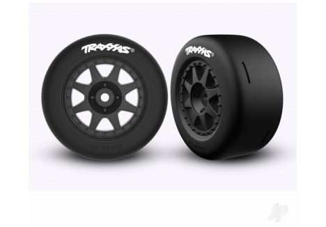 Mini Rally Speed Slick tires put maximum traction to the pavement for astonishing acceleration and cornering grip. Rear Speed Slick tires are softer than the front tires to maintain Rally's superior handling and balance. Tires come pre-glued and mounted to white 8-spoke Rally wheels. (Fits 12 mm hex, rear position)