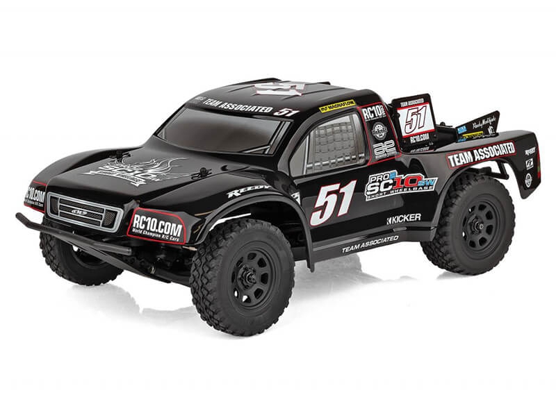 Team Associated’s new Pro2 SC10SW short course truck is a detailed and fun-to-drive Ready-to-Run RC truck. Based on our championship-winning Short Course truck, the Pro2 SC10SW features some of the latest features in racing. A durable lightweight aluminium top shaft, rugged steel turnbuckles and adjustable suspension geometry give the Pro2 SC10SW the ultimate in handling on all terrain. This makes it a perfect platform for short course racing!