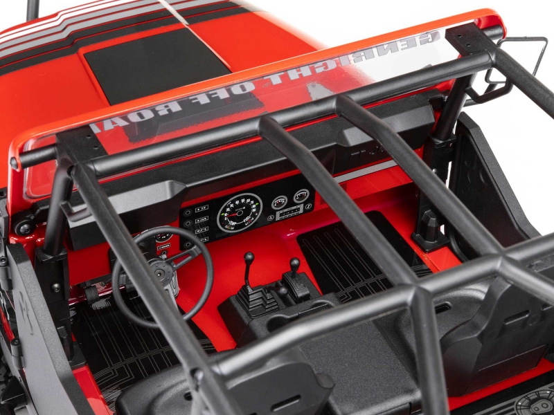 The SCX10 III Jeep CJ-7 tackles any trail with confidence, but its incredible scale detail makes Axial fans eager to turn it into their next rock-crawling masterpiece. In addition to the officially licensed Jeep CJ-7 body, this rig features officially licensed Gen-Right bumpers and body armor, a complete interior with an opening center console, a roll cage, and more. Even the wheels and tyres add to its authenticity. The wheels are officially licensed Raceline Daytona beadlocks, and the high-traction tyres are officially licensed Mickey Thompson Baja Boss treads.