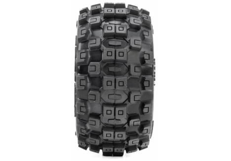 The Badlands tread pattern is one of the most recognized designs in RC. Its aggressive square lugs create multiple biting edges that dig into loose terrain, generating strong acceleration grip and improved deceleration control. Scaled specifically for the MINI KRATON, it maintains the performance profile drivers expect from the Badlands name.