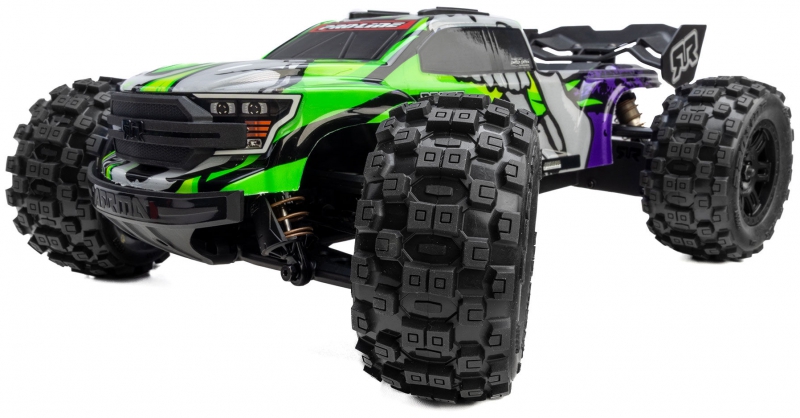 Rather than adapting a universal mini tire, this Badlands variant is tailored for the ARRMA MINI KRATON platform. The fitment, offset, and performance characteristics are optimized to enhance the truck's handling while preserving its aggressive stance.