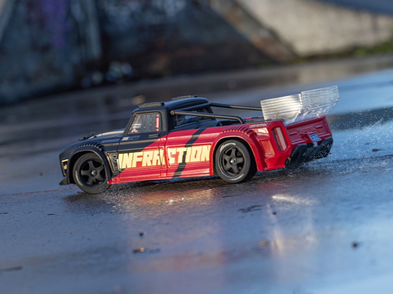 The ARRMA INFRACTION 223S BLX DSC 4X4 RTR delivers. Because the street is better at full speed.