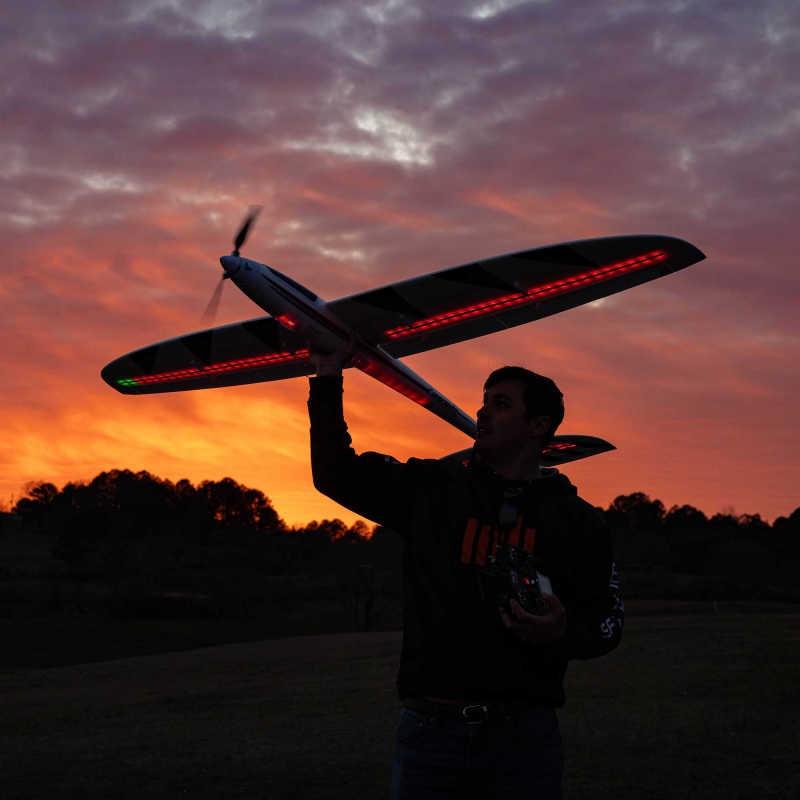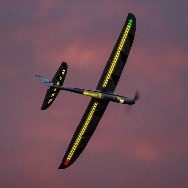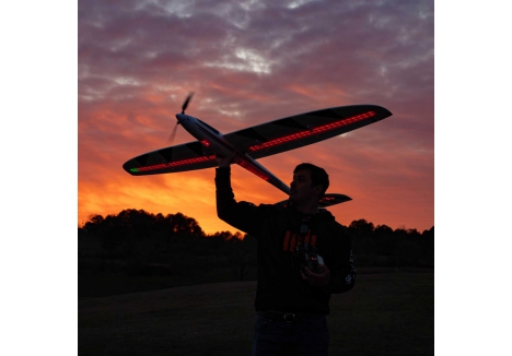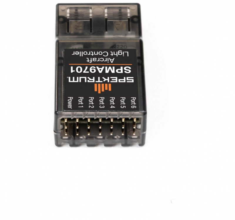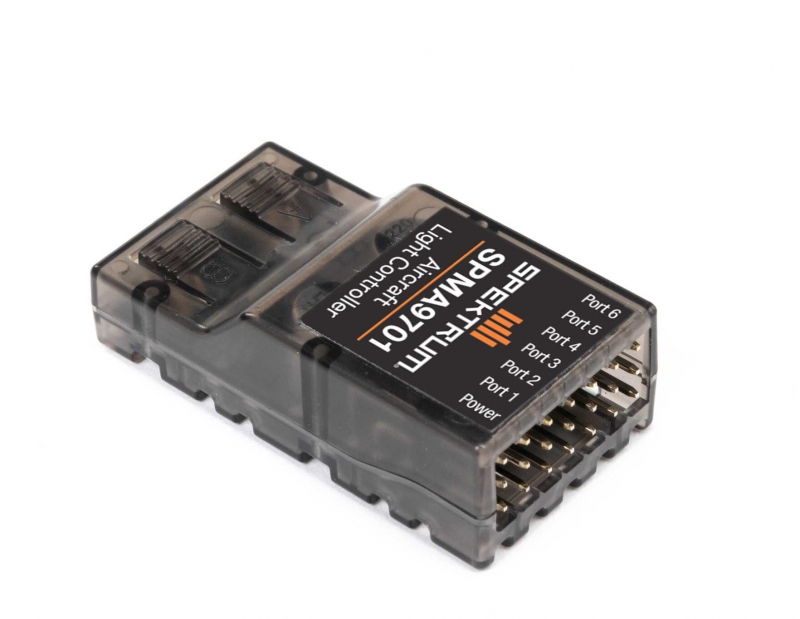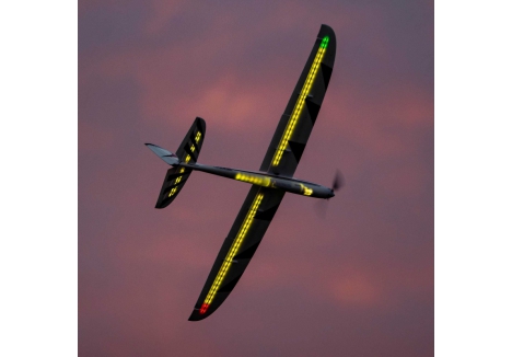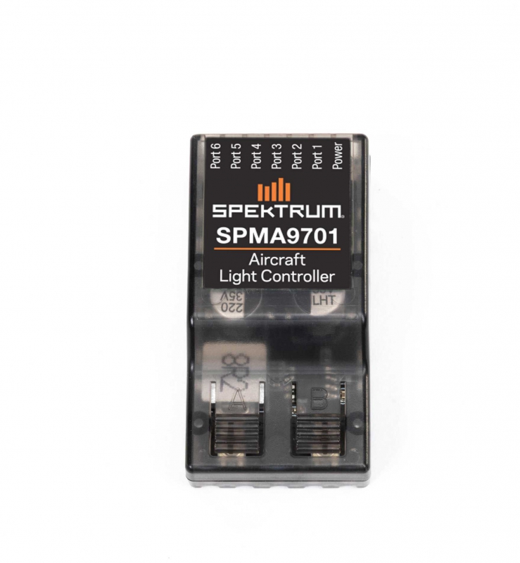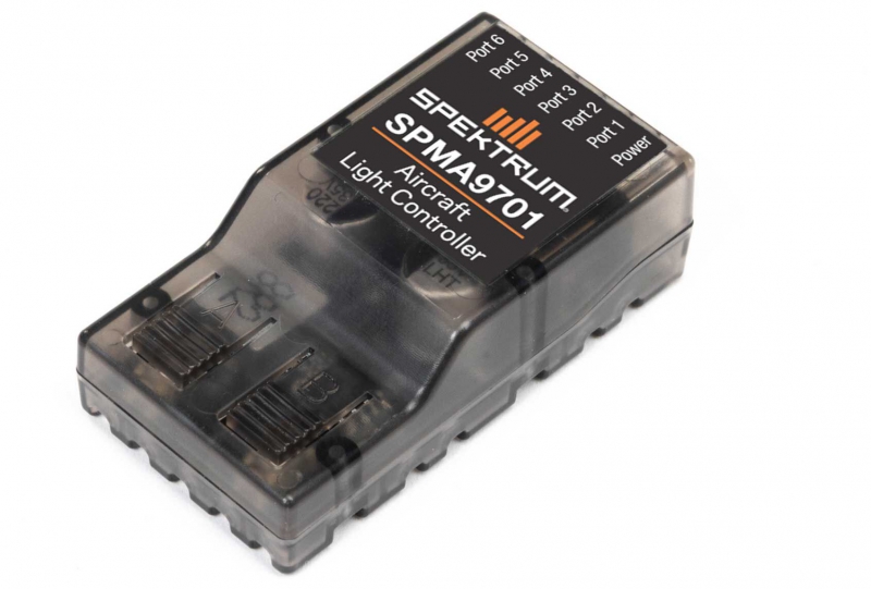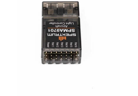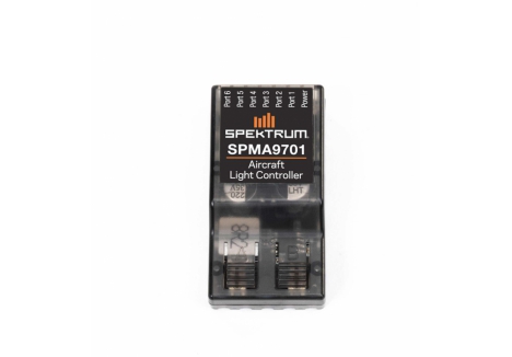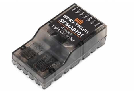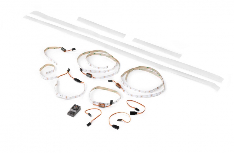The SPMA9701 LED Light Set with Controller: Conscendo 2.0m comes with a light controller, six LED strips, and replacement white tape to cover the LED strips. There are two LED strips for the main wings, two for the elevator stabilizers, and two for the fuselage.