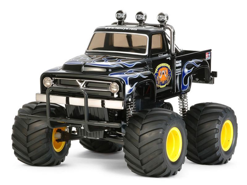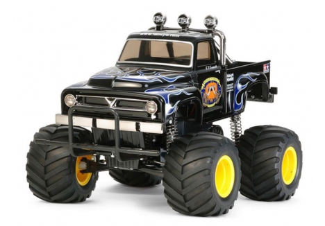The 1950's style U.S. style pick-up truck body is raised up over the monster truck wheels to ensure that this R/C truck will get attention anywhere you choose to drive it.