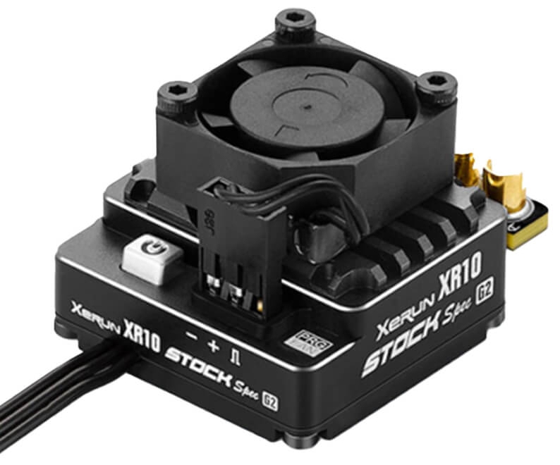 The XR10 Stock Spec G2 ESC is smaller and lighter than the standard XR10 Pro range and is the mini version of XR10 Pro 160A. The super small size (34.8 x 30 x 13.8mm) makes the installation convenient and the light weight provides more weight margin when adjusting the balance of the chassis.