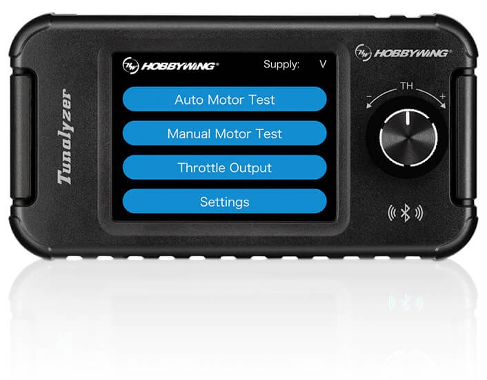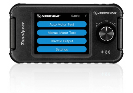 The Hobbywing Tunalyzer is used to test brushless DC motors and the internal components. It can measure the KV value, RPM, Current, End-bell timing and Sensor elements of a brushless motor. These parameters can be displayed on the LCD in real time so that you can have an intuitive and full understanding of the motor being tested. In addition, the built-in Bluetooth connection of the Tunalyzer can establish a connection to a Hobbywing esc through the mobile phone app to adjust the settings of the esc.