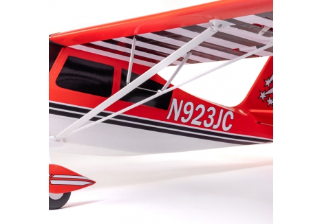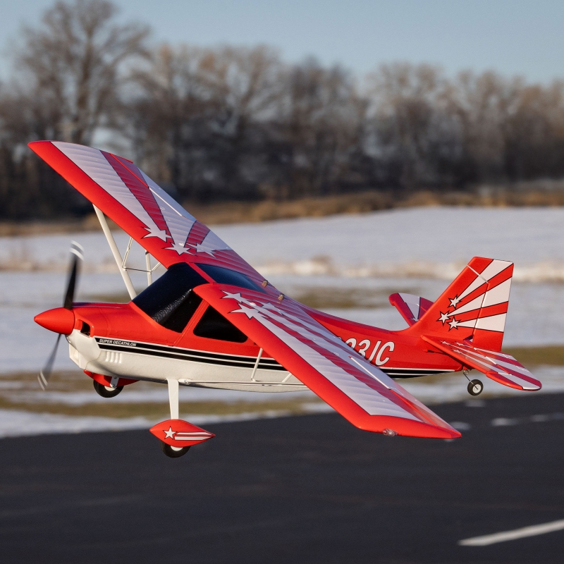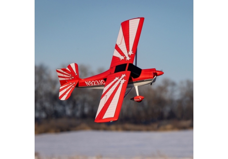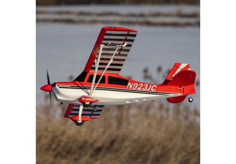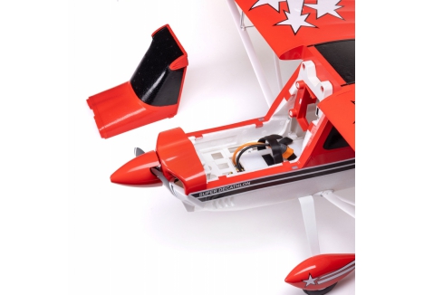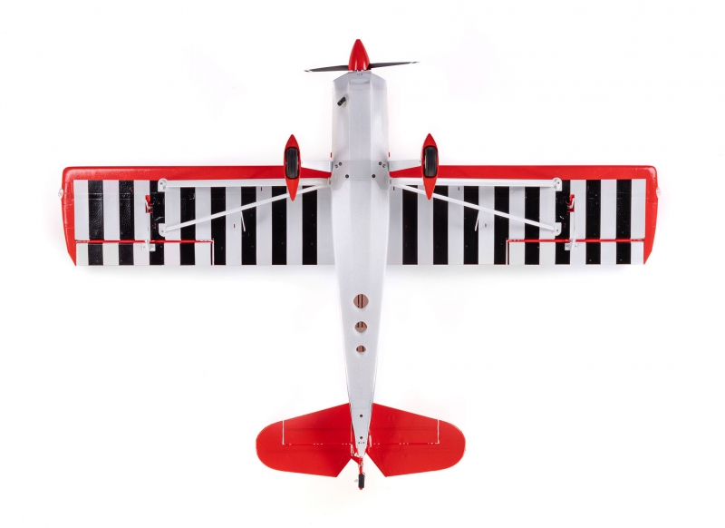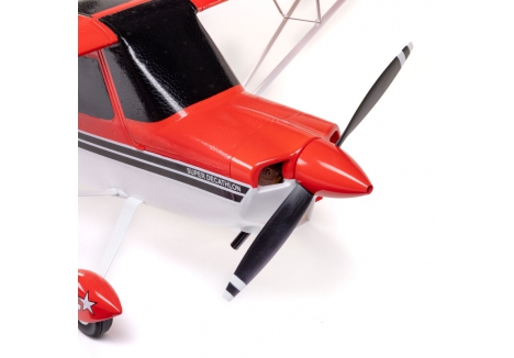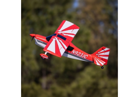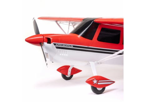 Take the next step into, hone your skills, and perform basic to aggressive aerobatics with the E-Flite® Super Decathlon 1.2m – one of the most capable and best-handling models of the classic aerobatic trainer ever! Like the original Decathlon RJG 1.2m, it's a replica of the aviation icon that's flown by professional pilots in airshows and pilots learning to fly aerobatics at their local airport. It's factory-finished with the popular and extremely recognizable red, white, and black "starburst" trim scheme, plus it features a variety of scale details, including functional LED landing and navigation lights, wheel pants, and wing struts. The one-piece wing is easy to install/remove thanks to hands-free connections and thumbscrews, and the struts snap into/out of place without the need for any fasteners or tools – even though it's conveniently sized to be easy to store and transport without disassembly! Improved digital and metal-geared servos, along with ball-link equipped linkages, provide even more precise and reliable control for smooth sport to aggressive aerobatic flying. Both versions feature a 3S and 4S 2200–3200mAh compatible power system, including a 45-amp Spektrum™ Avian™ Smart Lite ESC. The BNF Basic version is also equipped with an upgraded AR631+ receiver to deliver real-time telemetry data, enhanced AS3X+, optional-use SAFE Select and motor reversing, and a convenient Smart Transmitter File. All these details and features combine to deliver a convenient and extremely capable scale model that's an excellent choice for low-time, intermediate, and experienced pilots!