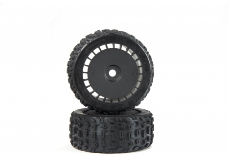 - Durable Belted dBoots Katar Tyres — The 4.2-inch multi-terrain wheels mount dBoots Katar belted tyres with medium-compound foam inserts, providing long-lasting performance and aggressive tread patterns for excellent grip on dirt, asphalt, grass, and mixed terrain. The belted construction resists bursting under high-speed cornering forces that puncture conventional tyres.