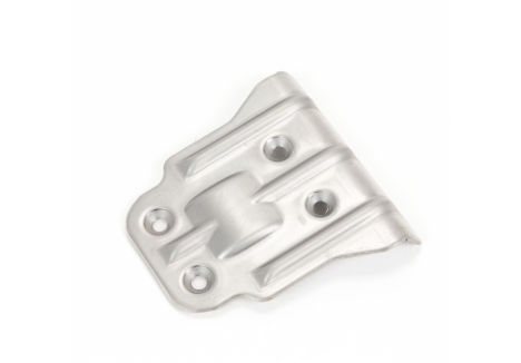 - Integrated Front Bumper and Skid Plate — Purpose-designed protection prevents radiator and electronics damage from frontal impacts. The wide bumper distributes impact forces across a larger area, and the skid plate protects the chassis plate and differentials from rocks and ruts during technical driving.