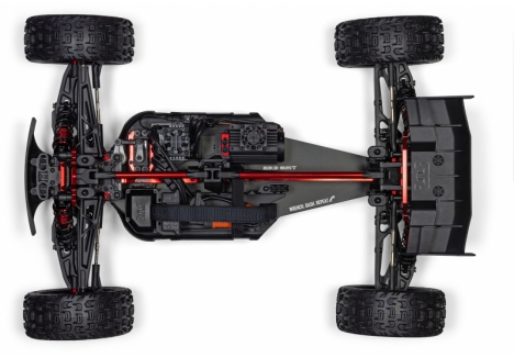 The TALION 6S EXB isn't just bigger—it's meaner and faster than ever before. With a wheelbase stretched to 16.18 inches (411mm), this 1/7-scale speed truck delivers a planted, confident stance at full throttle, where full throttle means 75+ mph of brushless 6S powered, ground-hugging, extreme bash insanity. The extended platform improves on the previous 1/8 model in every measurable way, delivering more control, more confidence, and more straight-line performance when you're pushing the limits. This is a ready-to-run RC truck that arrives fully assembled and electronics-ready, meaning you can get on the track faster than with traditional kits that require hours of assembly.