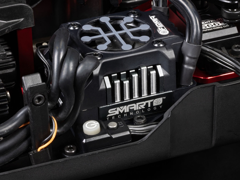 - Spektrum Firma 150A Smart V2 ESC with B5.12 Firmware — This 4S/6S compatible electronic speed controller delivers the voltage and current management required for brushless 6S performance. The updated B5.12 firmware provides sharper acceleration response, smoother power delivery, and smarter throttle control that adapts to driving conditions. IC5 connectors (EC5 compatible) ensure reliable power transfer without connection failures.