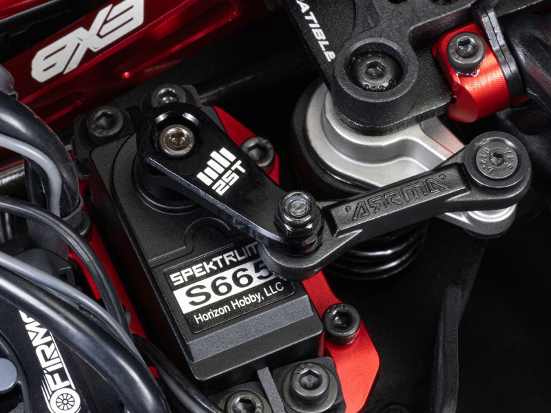- High-Torque Spektrum S665 Waterproof Digital Servo — The servo delivers 19.08 kg-cm (265 oz-in) of torque with metal gearing and fully waterproof construction, providing the steering precision and response speed necessary for accurate control at 75+ mph. The servo's fast response time and robust construction ensure reliable operation in damp conditions common in UK outdoor driving environments.