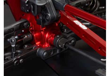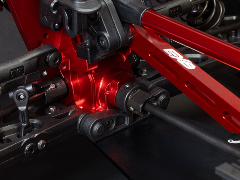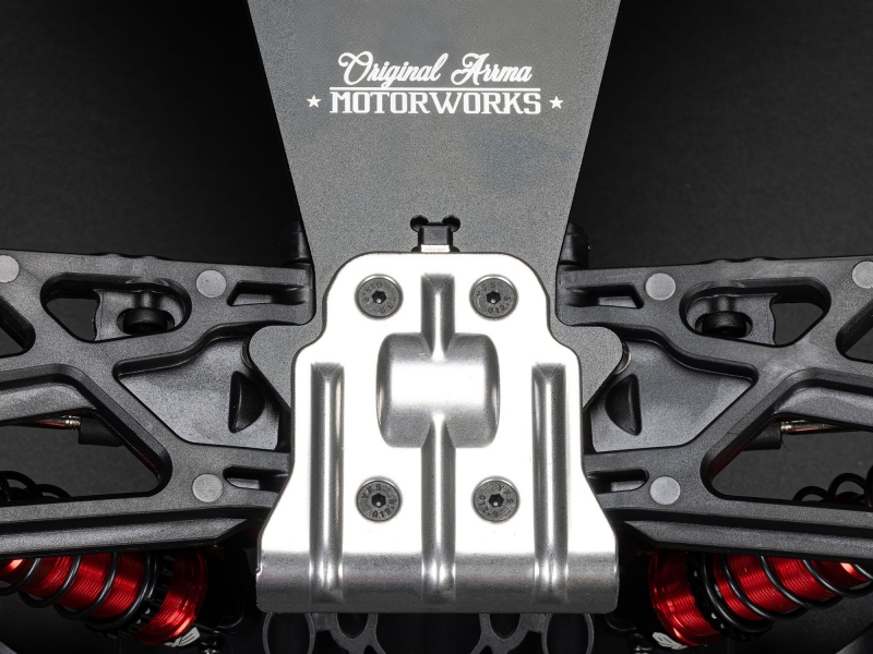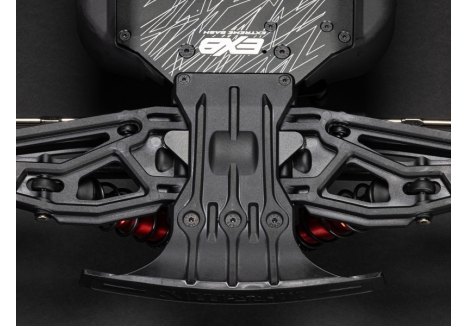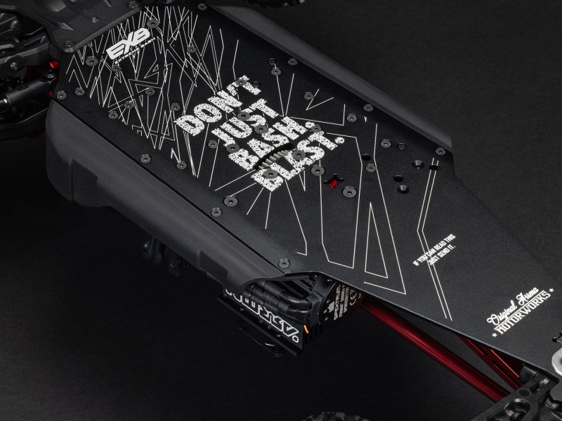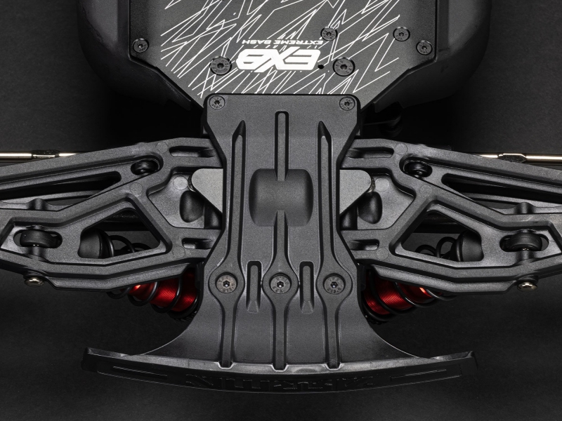 - EXB (Extreme Bash) Toughened Chassis — The chassis plate is fabricated from laser-etched 7075 T6 aluminium, the same premium aerospace-grade material used in high-performance engineering applications. This material gains further rigidity from front and rear aluminium chassis braces, distributed stress evenly across the platform and resisting impact deformation that would damage lesser trucks. The construction philosophy means this RC truck can absorb serious punishment from repeated high-speed impacts and challenging terrain without structural failure.