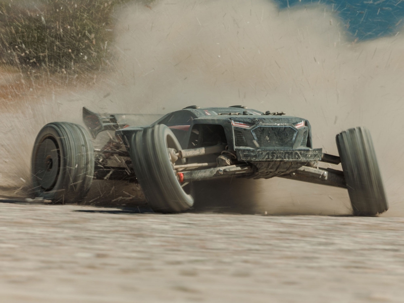 - One-Piece High-Downforce Wing Design — The included high-downforce wing, mounted on a rigid one-piece mount, generates aerodynamic load that presses the truck onto the ground at speed. This aerodynamic engineering improves stability during high-speed cornering and jumping, allowing drivers to maintain control and confidence when pushing 75+ mph.