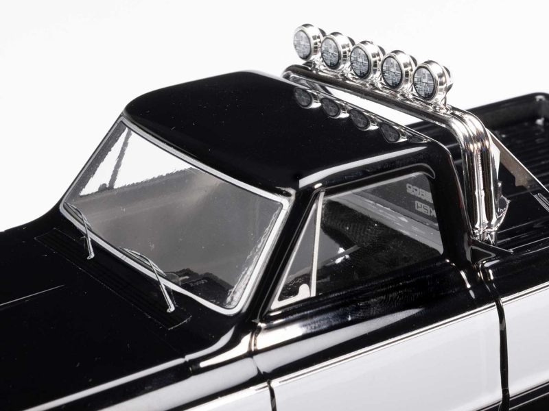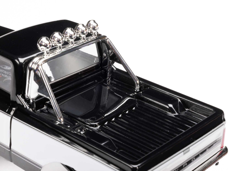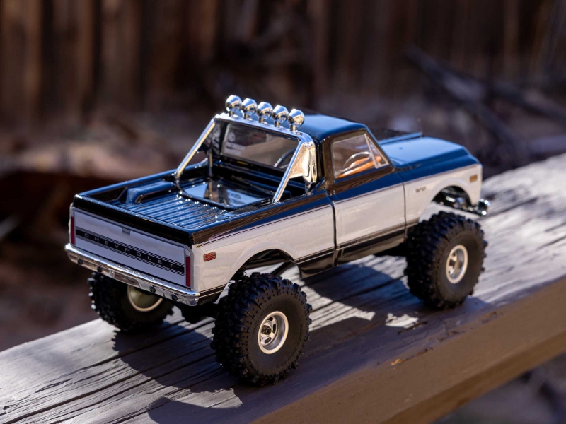 Three interchangeable front grills are included: the iconic 1967/68 style, the bold 1969/70 design, and the distinctive 1971/72 look. Swap them out to match your favorite year or create the perfect custom build. The body features a stylish 2-tone finish via applied graphics that can easily be removed if a single colour suits your style better. New authentic deep-dish slotted wheels replicate the iconic style that dominated the '80s and '90s truck scene, mounted with officially licensed Interco Super Swamper TSL Boggers that have earned a reputation for aggressive performance on everything from mud bogs to dirt trails and even pavement.